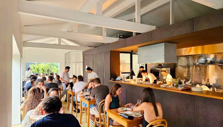 Cozinha na brasa e forno a lenha com toques brasileiros em pratos como bacalhau, arroz de pato e corte de cordeiro. Encerramentos com ambrosia e cartola adoçam ainda mais a experiência.