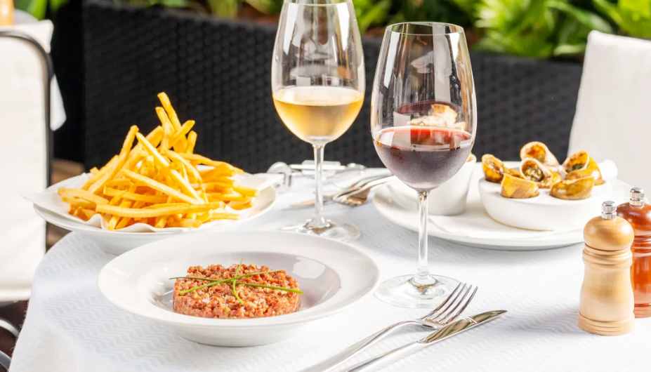 Clássicos da gastronomia francesa ganham destaque no Jardins: steak tartare, boeuf bourguignon, bife Wellington e sobremesas como mil-folhas e grande madeleine reforçam o charme parisiense local.